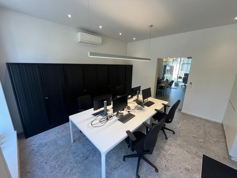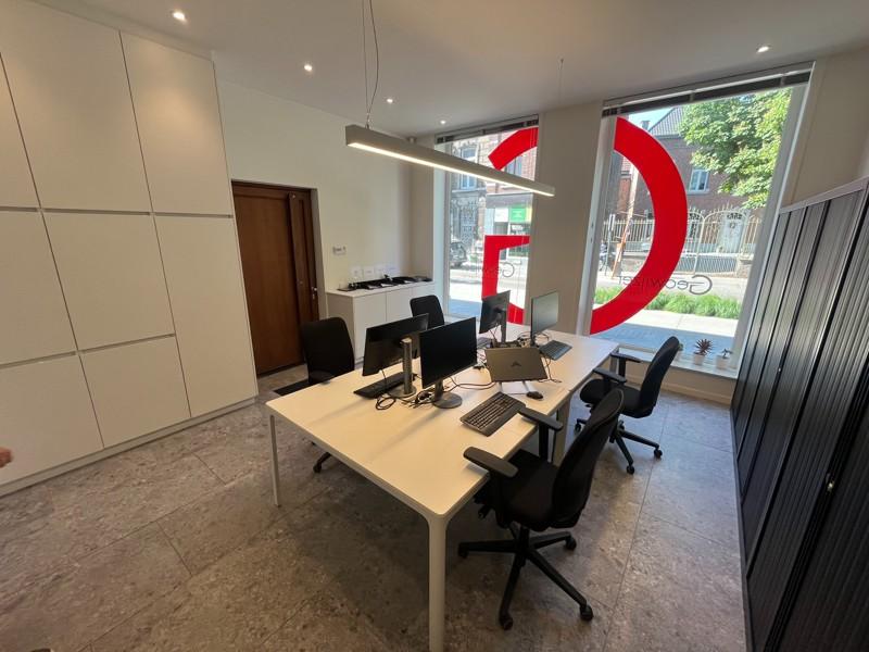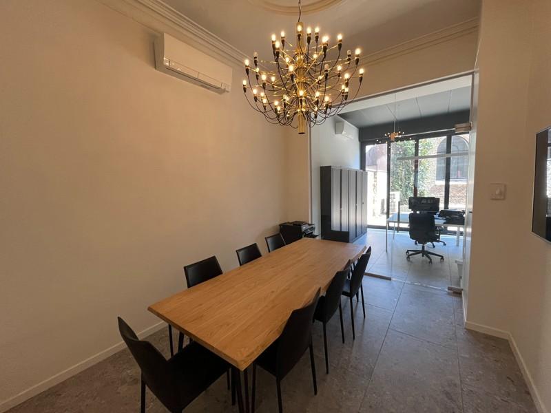 Momenteel is het pand opgedeeld in twee kantoorruimtes met kitchenette, een vergaderruimte en een apart toilet. Het gelijkvloers pand is volledig onderkelderd waarbij de kelder bereikbaar is via een trap én beschikt over een autolift – een absolute meerwaarde voor wie opslagruimte of logistieke ondersteuning zoekt. Als extra troef beschikt het pand over een zonnig terras, een ideale plek voor een verkwikkende pauze tijdens een drukke werkdag.