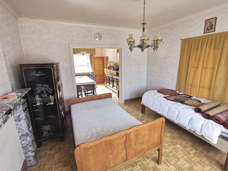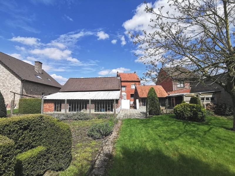 De woning ligt op een perceel met 24m straatbreedte en een totale oppervlakte van 59a77ca. Gelijkvloers treffen we aan: inkom, leefruimte, eetruimte, keuken, veranda en badkamer. Op de verdieping is er een overloop en 4 slaapkamers. De totale bewoonbare oppervlakte bedraagt 147m². Er is een ruime kelder van 38m² aanwezig. Aan de woning zijn er nog bergingen en een garage voor een totale oppervlakte van 225m², ideaal te gebruiken als opslagruimte voor beroeps- of vrijetijds doeleinde.