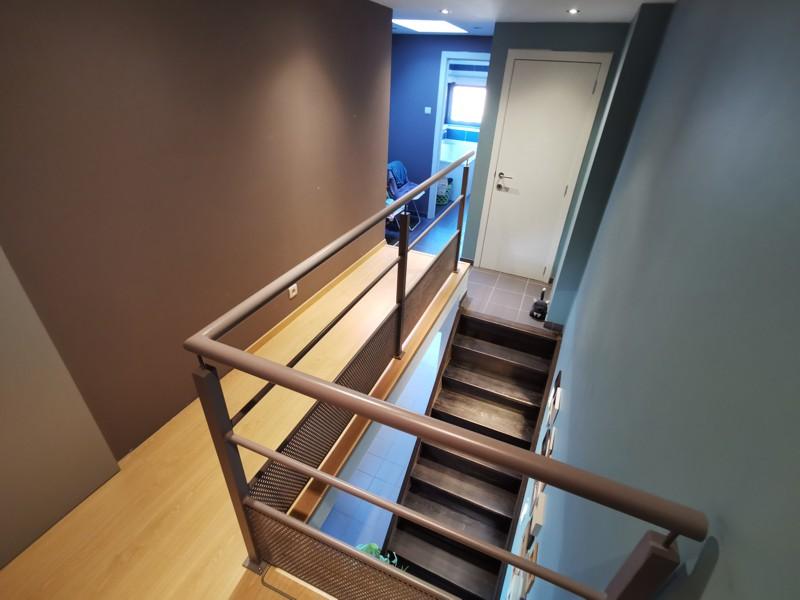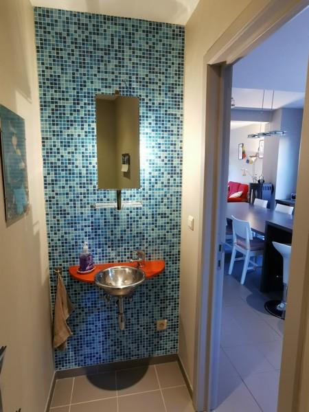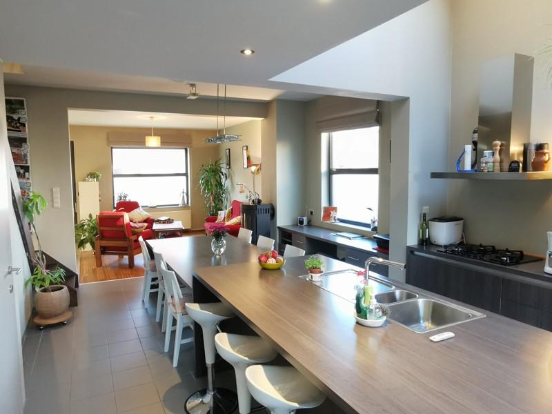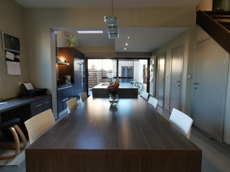 Op het gelijkvloers vinden we een inkom, toilet, zithoek en eetplaats met open keuken terug. Deze open keuken kijkt uit op de sfeervol ingerichte stadtuin. Langs hier is er toegang tot de wasplaats en de berging. Op de verdieping is er een overloop met een kleine bureau, een badkamer, een apart toilet en 2 slaapkamers waarvan één ingericht is met een grote dressing. In de kelder staan de technische installaties.